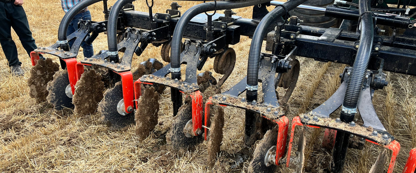 Compatibility with no-till and perennial crops: Manure injection equipment has many low-disturbance options and can be compatible with no-till management and perennial rotations. Farms may consider using toolbars designed especially for grass, perennial forages, and cover-cropped fields. These often operate at very shallow depths and have closer disc spacing, and sometimes, a boot or shoe will follow behind, depositing manure in the narrow, shallow slot made by the discs.